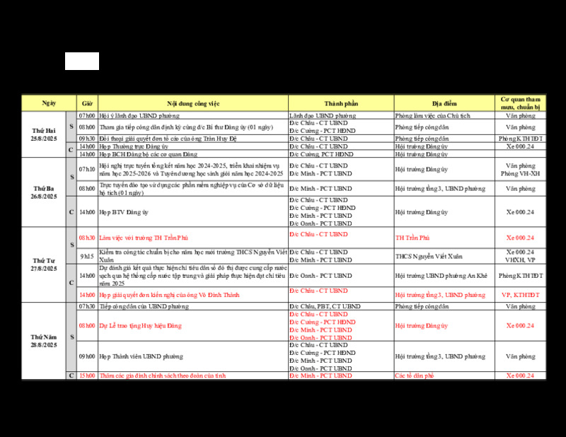 Lịch Công tác tuần 9 17/09/2025, 10:25:40 - Lượt xem: 5 Tweet Thêm vào danh sách Báo xấu Thông tin tài liệu Lịch Công tác tuần 9