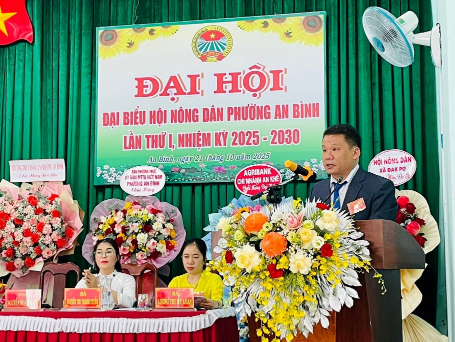 Phát biểu tại Đại hội, Đồng chí Bùi Văn Khánh, Bí thư Đảng ủy, Chủ tịch Hội đồng nhân dân phường nhấn mạnh: Nhiệm kỳ 2025-2030 mở ra nhiều cơ hội nhưng cũng đặt ra không ít thách thức. Bối cảnh mới của phường nói riêng và của tỉnh Gia Lai nói chung sau sắp xếp đơn vị hành chính, cùng với các chủ trương lớn của Đảng, Nhà nước về phát triển nông nghiệp, nông dân, nông thôn vừa là những điều kiện thuận lợi nhưng cũng đặt ra nhiều nhiệm vụ quan trọng. Đặc biệt, chúng ta cần phải quán triệt sâu sắc và toàn diện các Nghị quyết trụ cột của Đảng trong kỷ nguyên mới, nhất là Nghị quyết số 46-NQ/TW, ngày 20/12/2023 của Bộ Chính trị về đổi mới, nâng cao chất lượng hoạt động của Hội Nông dân Việt Nam, Quyết định số 182/QĐ-TTg của Thủ tướng Chính phủ, xây dựng các chuỗi liên kết “4 nhà” một cách thực chất, phát triển các sản phẩm OCOP có thương hiệu, gắn sản xuất với chế biến và tiêu thụ. Hội Nông dân phải là lực lượng tham gia tích cực trong thực hiện chuyển đổi số, hiện thực hóa Nghị quyết 57-NQ/TW của Bộ Chính trị. Dù còn nhiều khó khăn, nhưng đây là xu thế tất yếu.