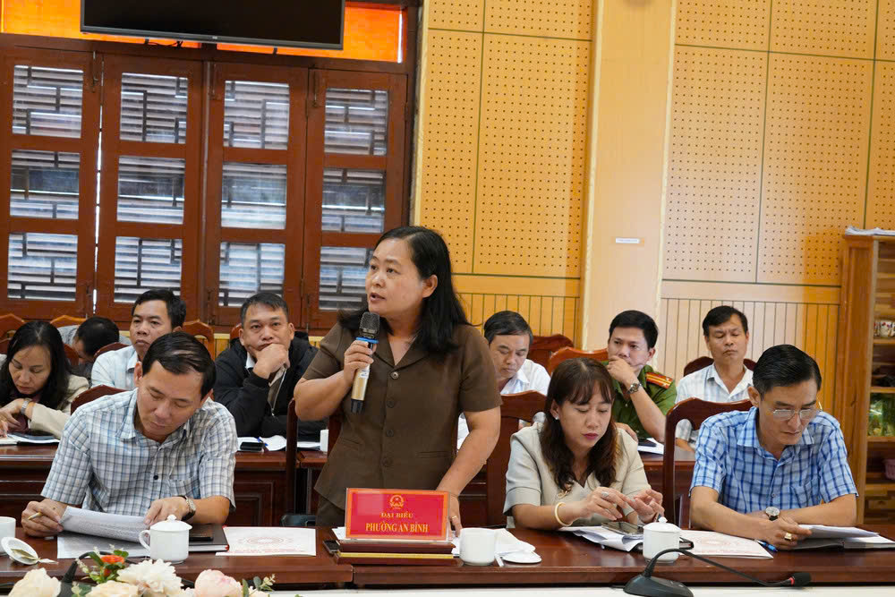 Đồng chí Nguyễn Thị Châu, Chủ tịch UBND phường An Bình phát biểu tại hội nghị