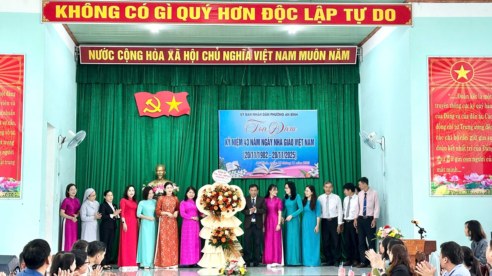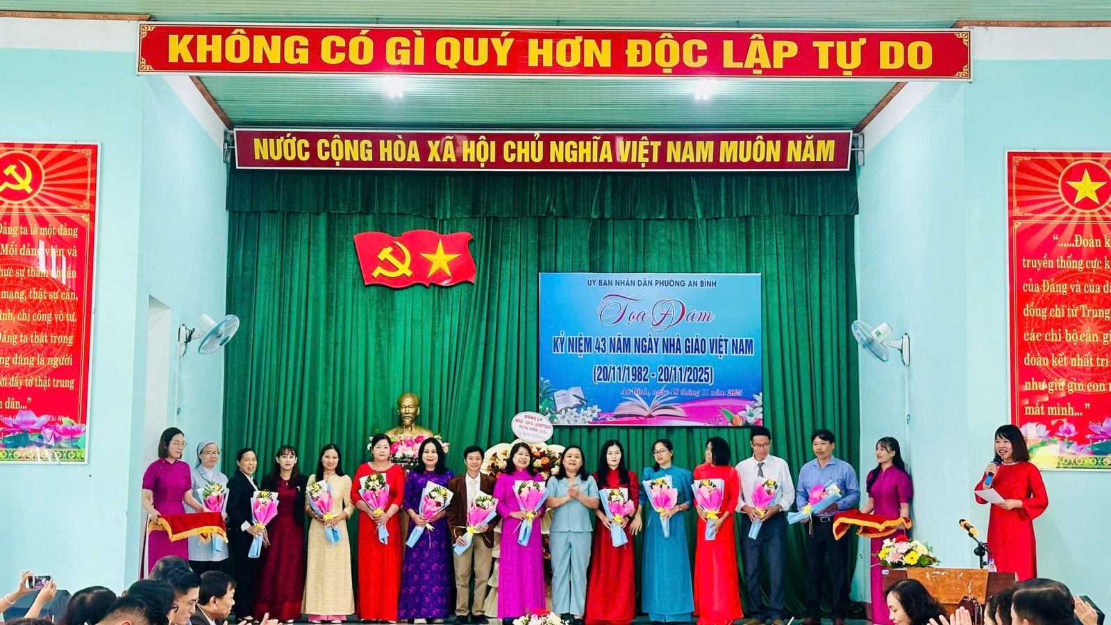 Kết thúc buổi tọa đàm, Lãnh đạo Phường đã trao tặng những lẵng hoa tươi thắm tri ân đến đại diện các đơn vị trường học, ghi nhận những đóng góp to lớn của họ vào sự nghiệp giáo dục. Buổi lễ khép lại trong không khí ấm áp, trang trọng và đầy ý nghĩa, một lần nữa khẳng định truyền thống "Tôn sư trọng đạo" cao đẹp tại Phường An Bình.